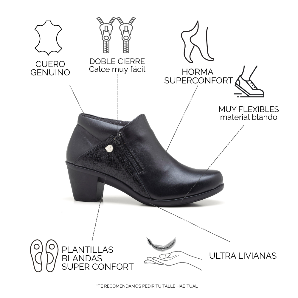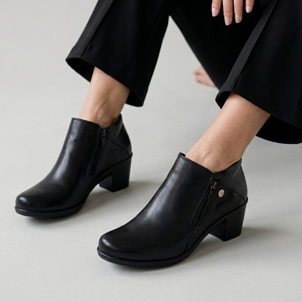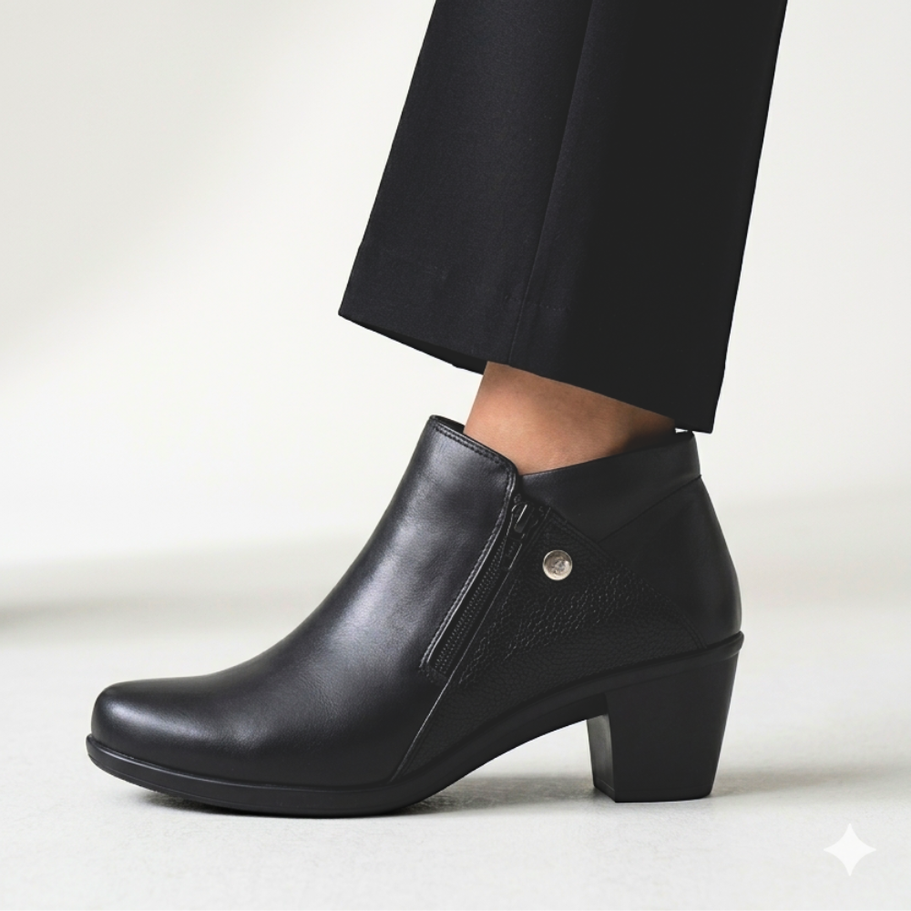 Diseñada especialmente para mujeres que priorizan el bienestar sin resignar estilo, esta botineta combina materiales nobles con una estructura pensada para el uso diario. Ideal para pies delicados, brinda suavidad, contención y un calce práctico que acompaña todo el día.